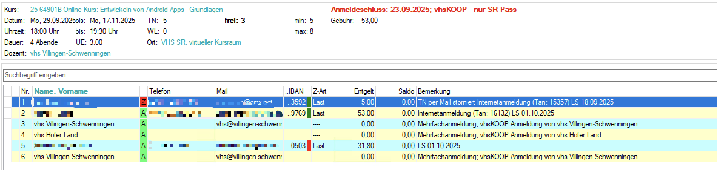 Wartelisten-Belegungen werden an alle beteiligten VHSn durch-synchronisiert - ebenso Stornos.